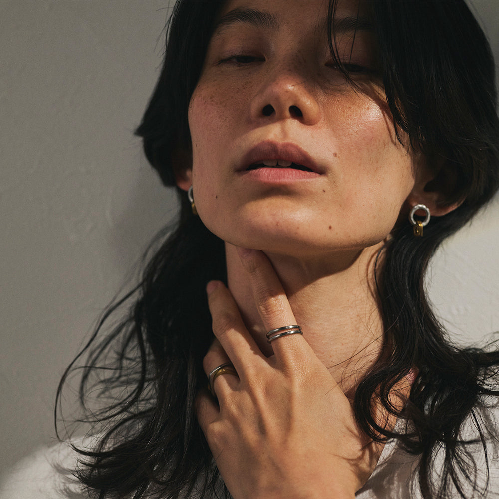 ゴールドカラーは、IP(イオンプレーティング)加工によってステンレスに着色をしています。IP加工は通常のメッキと比べ、密着性・耐食性・磨耗耐久性に優れているため、金属アレルギーが起こりにくくお肌に優しい作りとなっています。