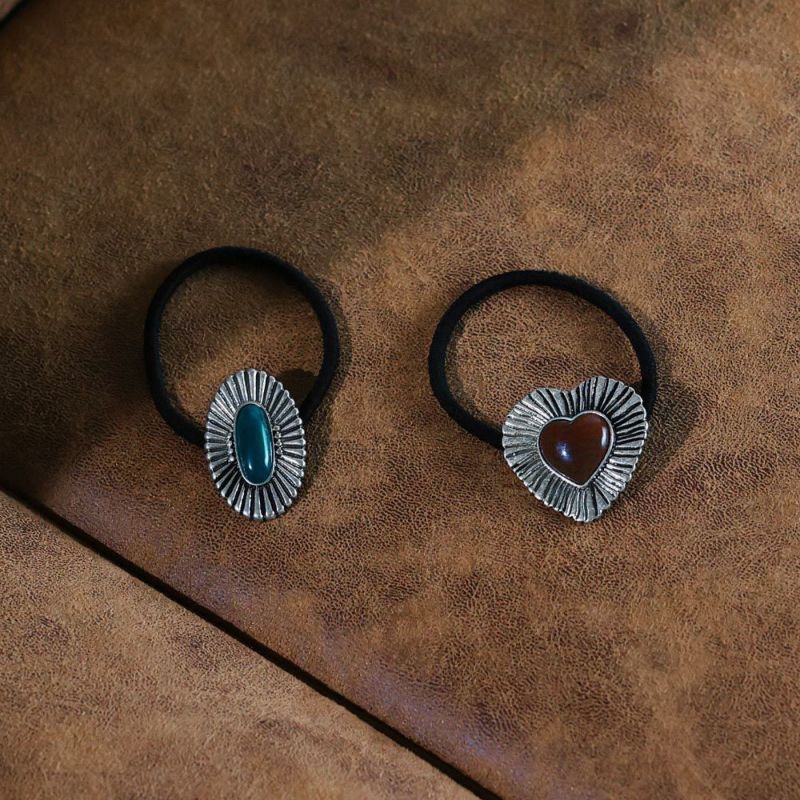 【LIMITED NUMBER】Vintage Like/Hair Ornaments ヘアゴム ニッケルフリー オーバル ハート コンチョ マーブル メタル ヘアポニー ブレスポニー