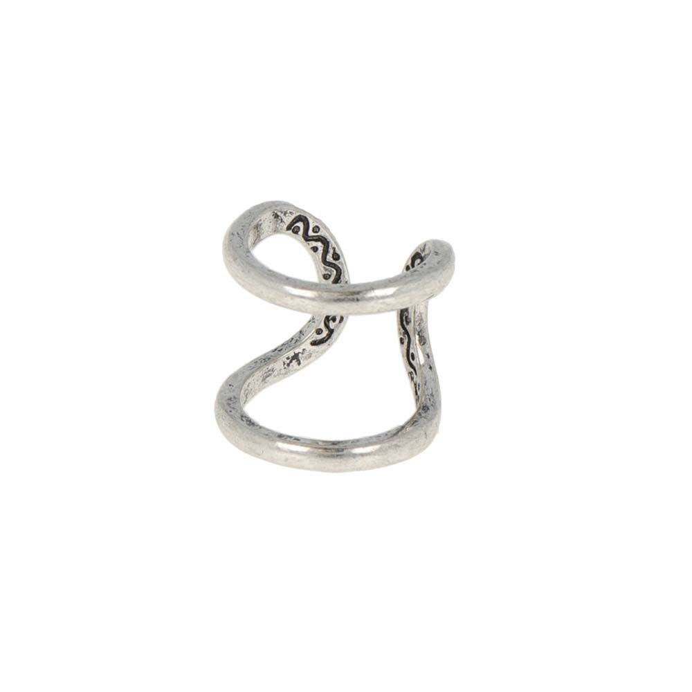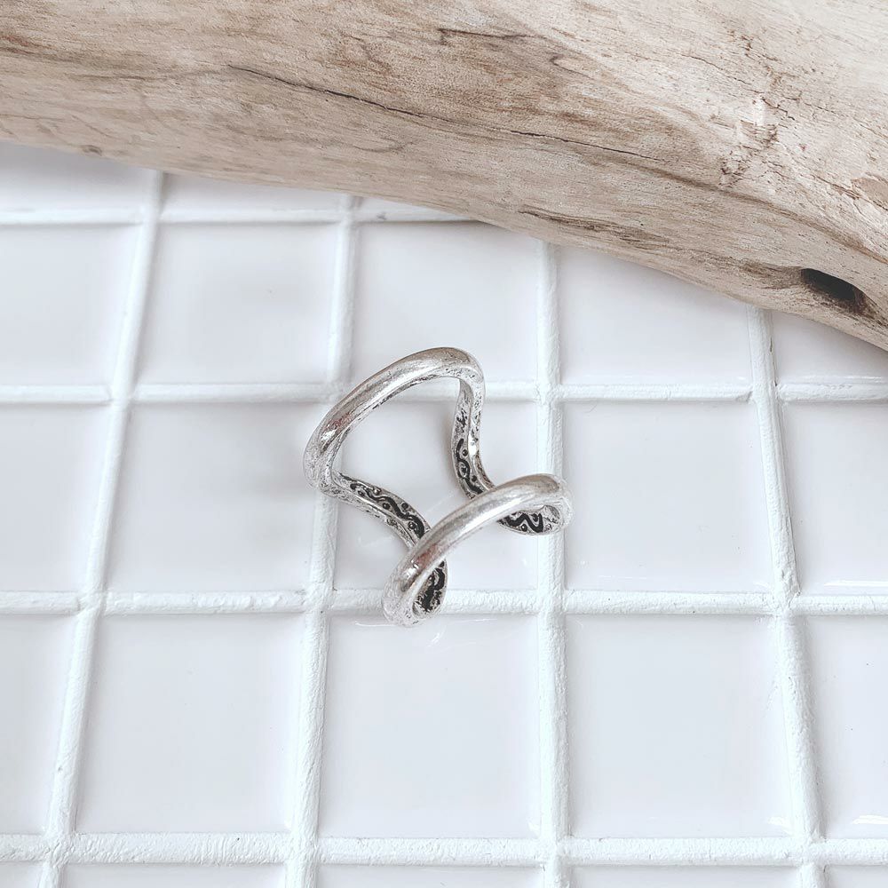 メンズライクなシルエットやネイティブな模様をあしらったデザインは、墨入り加工でメリハリをつけたヴィンテージな風合いが特徴。着けすぎくらいがちょうどいい、自由なレイヤードスタイルが楽しめるリングです。