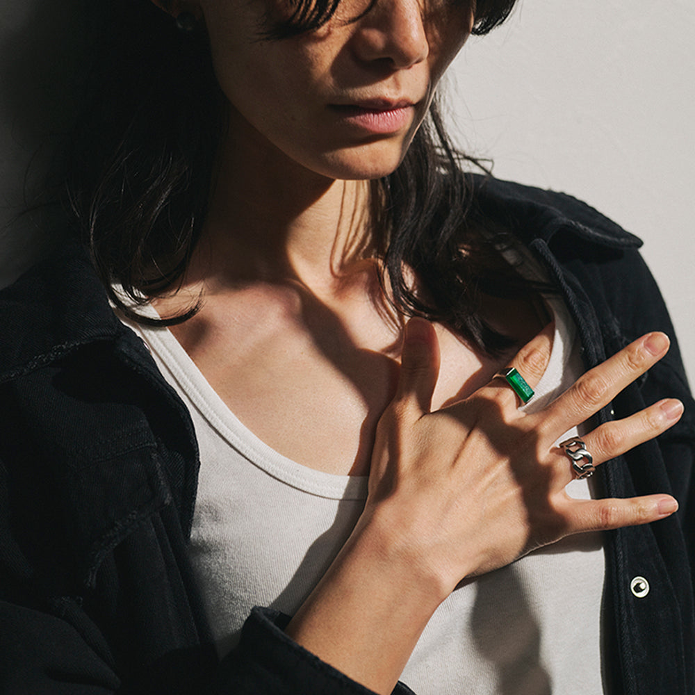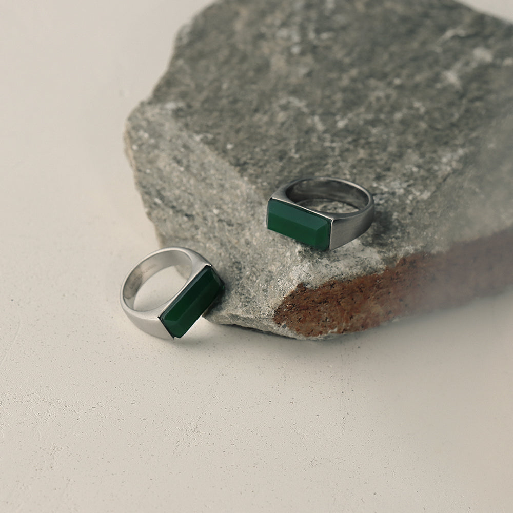 【LIMITED NUMBER】STAINLESS collection リング メタル レクタングル 天然石 13号 17号 指輪