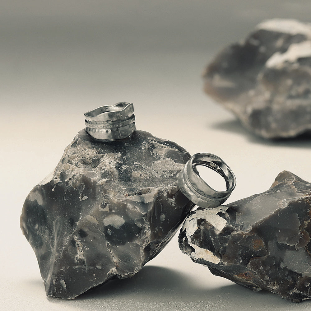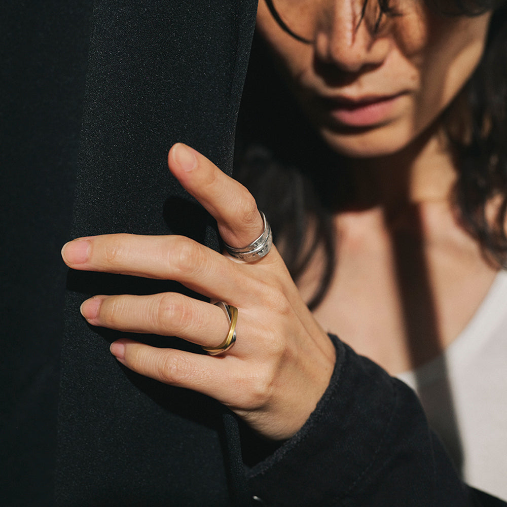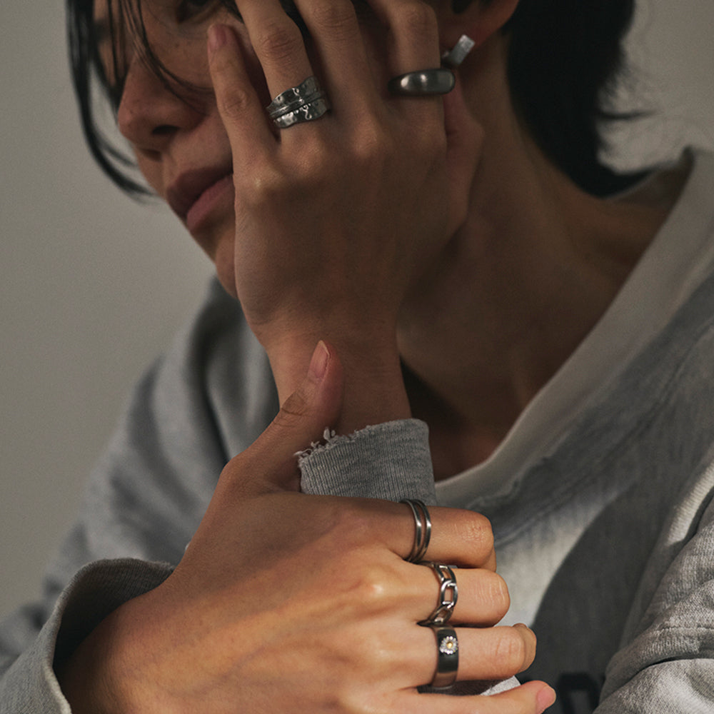【LIMITED NUMBER】STAINLESS collection リング メタル テクスチャー ウェーブ ライン フリル 13号 17号 指輪