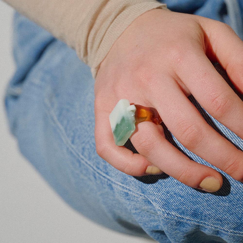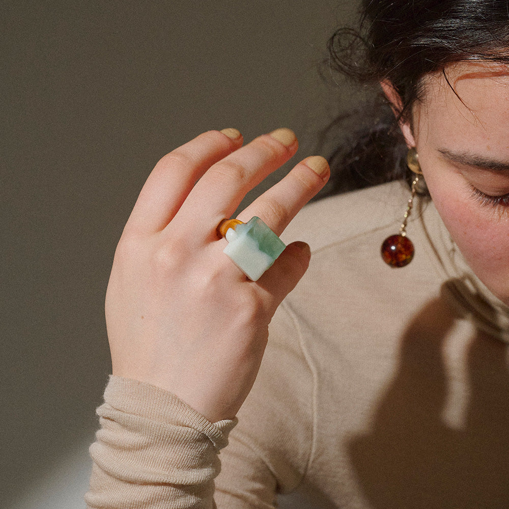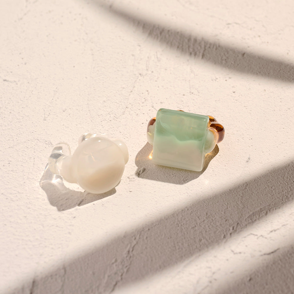 【LIMITED NUMBER/リミテッドナンバー】MELLOW スクエア サークル ウェーブ クリア マーブル カラーボール 12号 指輪