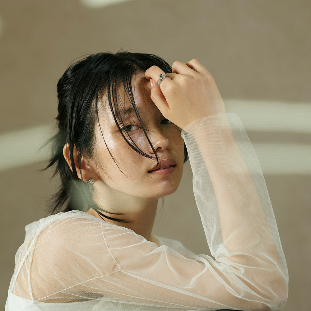 銀白色の気品ある輝きと優れた耐久性・耐変色性、安全性を兼ね備えた肌に優しい高品質素材。