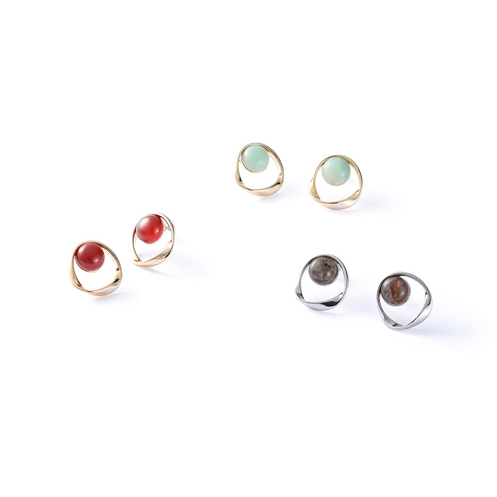 【Suu her.】ピアス ツイスト リング サークル 天然石 チタンポスト スタッドピアス オリジナルクリアケース付き