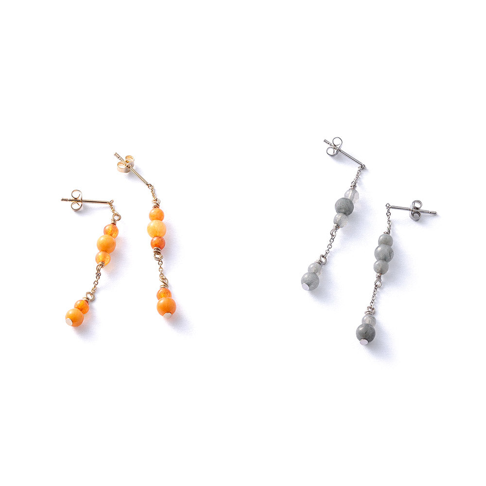 天然石(オレンジ/トパーズ、グレー/グレークオーツクリスタル)