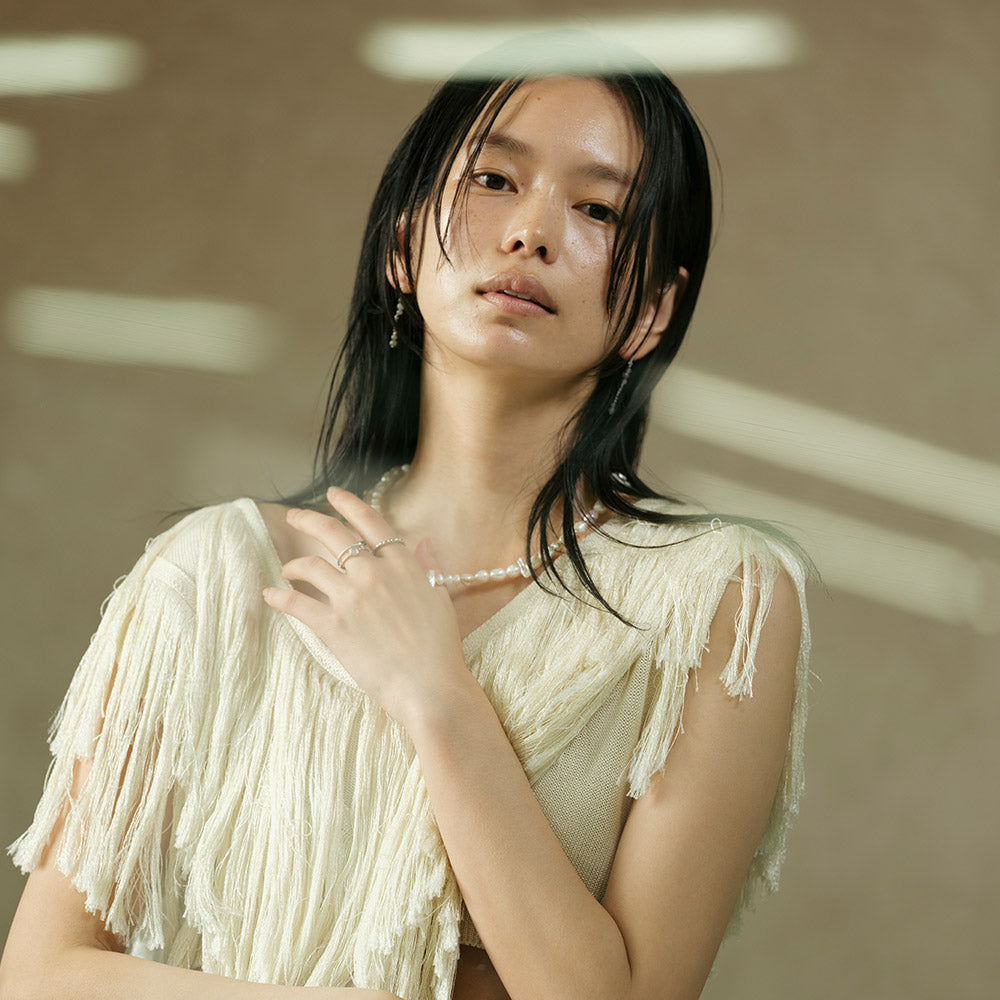 銀白色の気品ある輝きと優れた耐久性・耐変色性、安全性を兼ね備えた肌に優しい高品質素材。