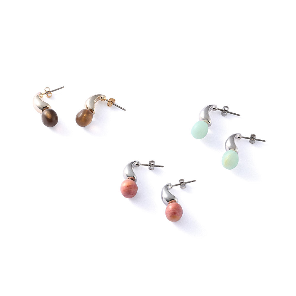 【Suu her.】ピアス ドロップ ボール 天然石 チタンポスト スタッドピアス オリジナルクリアケース付き