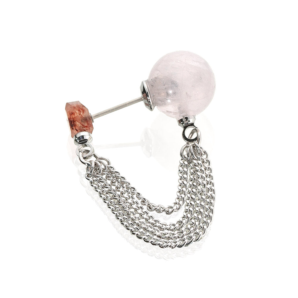 【Suu her.】ピアス 4連 チェーン ボール 天然石 チタンポスト バックキャッチ フープピアス オリジナルクリアケース付き