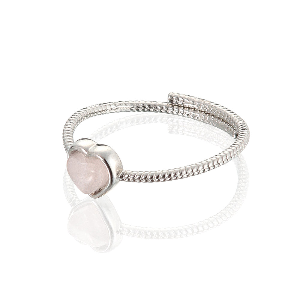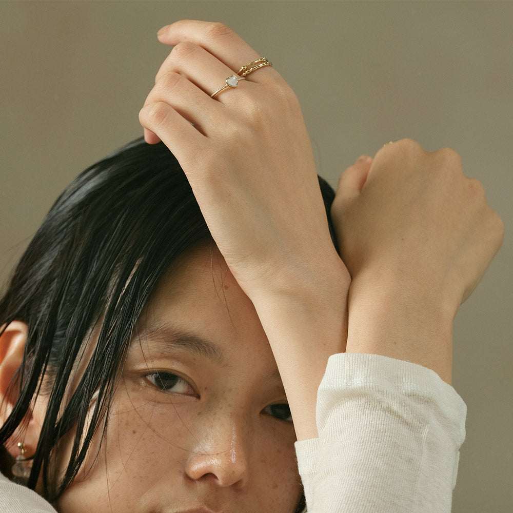 【Suu her.】リング テクスチャー ミニ ハート フレーム 天然石 フリーサイズ 指輪 オリジナルクリアケース付き