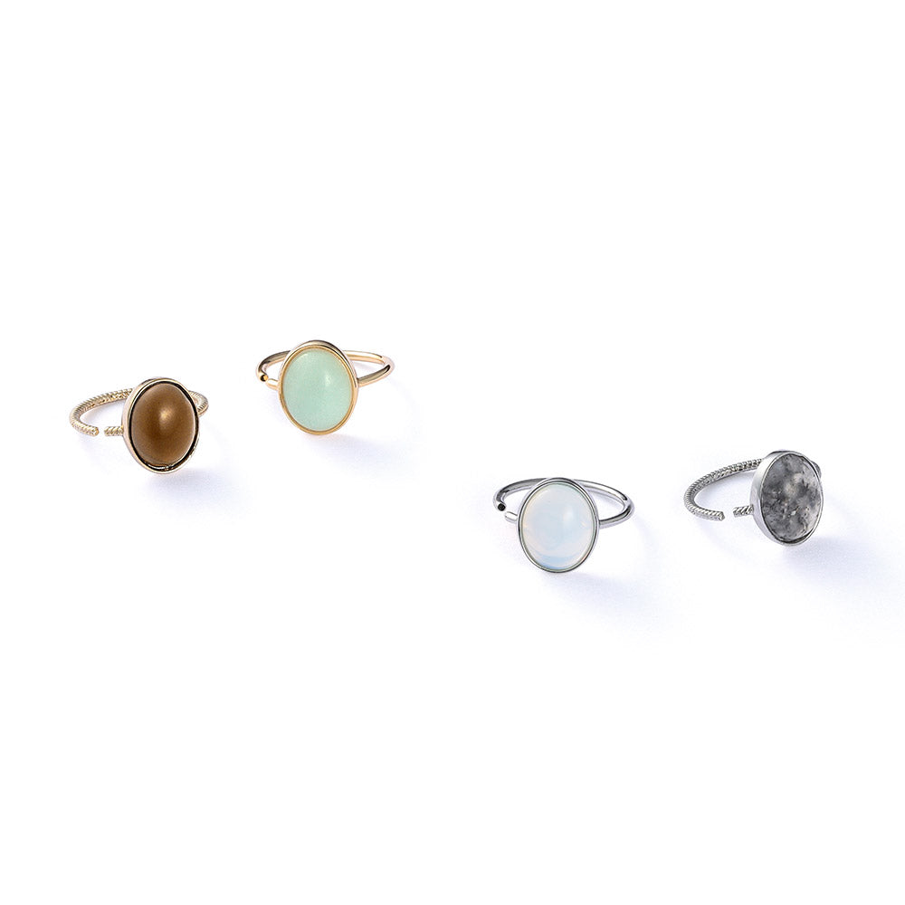 【Suu her.】リング テクスチャー オーバル フレーム 天然石 フリーサイズ 指輪 オリジナルクリアケース付き